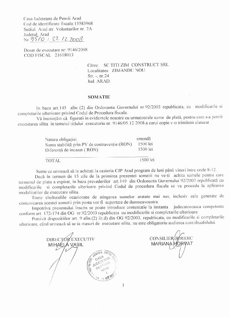 Somaţiile au fost trimise prin posta cu scrisoare recomandata, fiind returnate, intrucat destinatarii nu au fost gasiti la domiciliu de catre factorii postali.