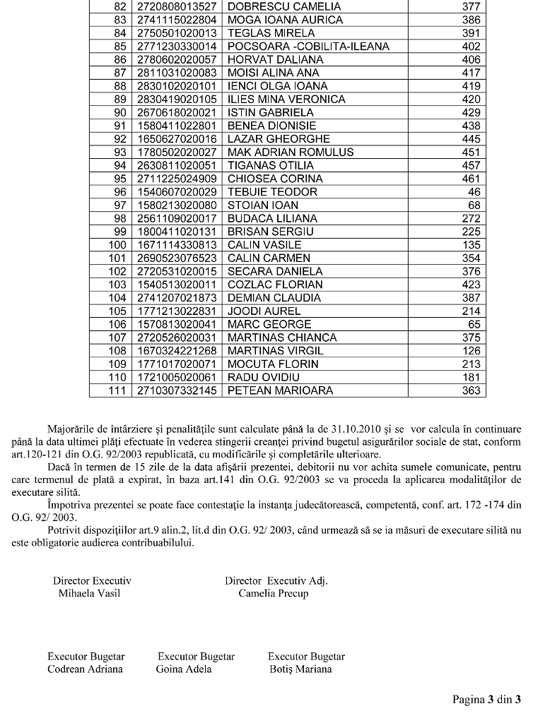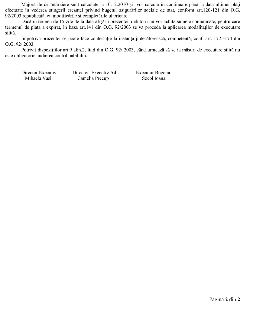 DEBITORI PENTRU CARE A INCEPUT PROCEDURA EXECUTARII SILITE PENTRU RECUPERAREA DEBITELOR PROVENITE DIN DECLARATIILE DE ASIGURARE OCTOMBRIE 2010